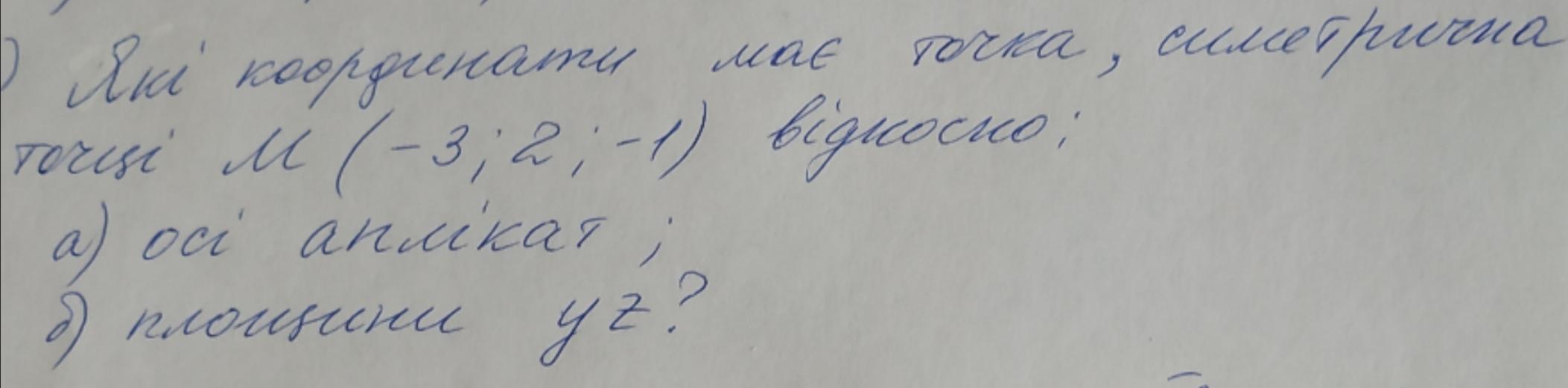 б) Точка, симметричная точке (-3;2;-1) относительно плоскости уz, будет точка (3;2;-1), т.е. она поменяет только знак абсциссы.