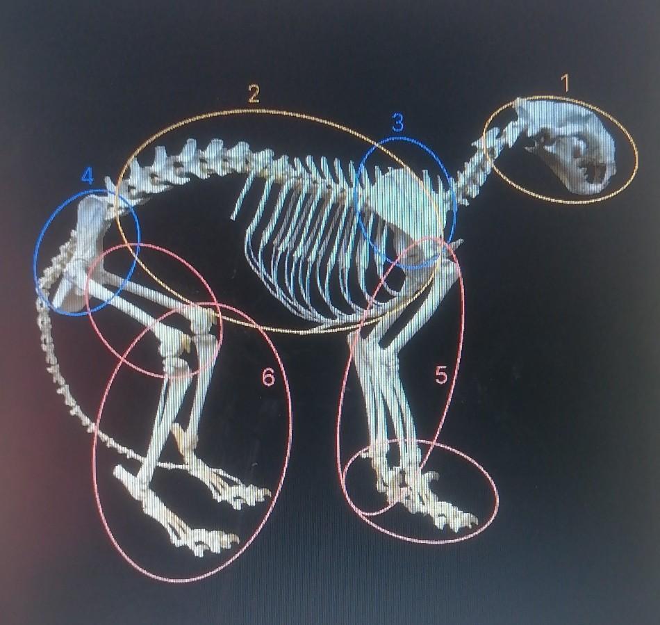 какими цифрами на иллюстрации обозначено отделы скелета тигра?