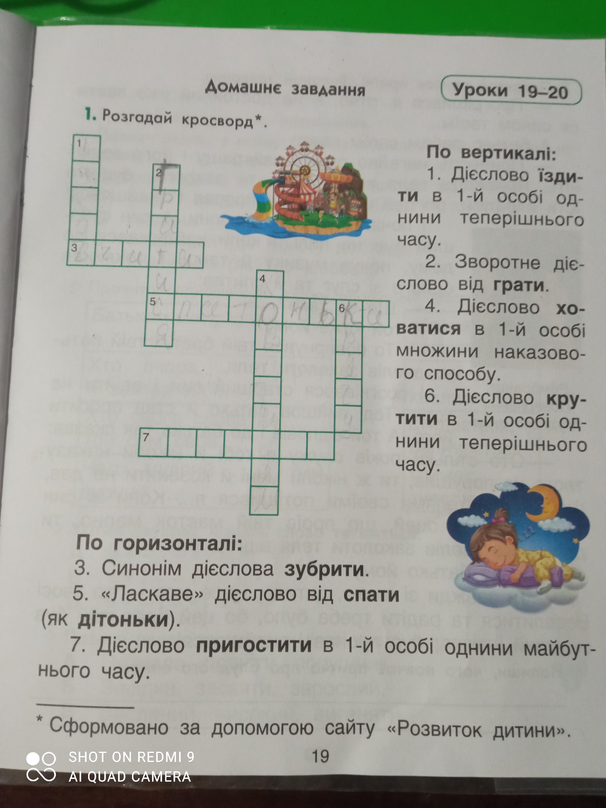 1. Їжджу 2.гратися 3.учити 4.ховаймося 5.спатоньки 6.кручу 7.пригощю