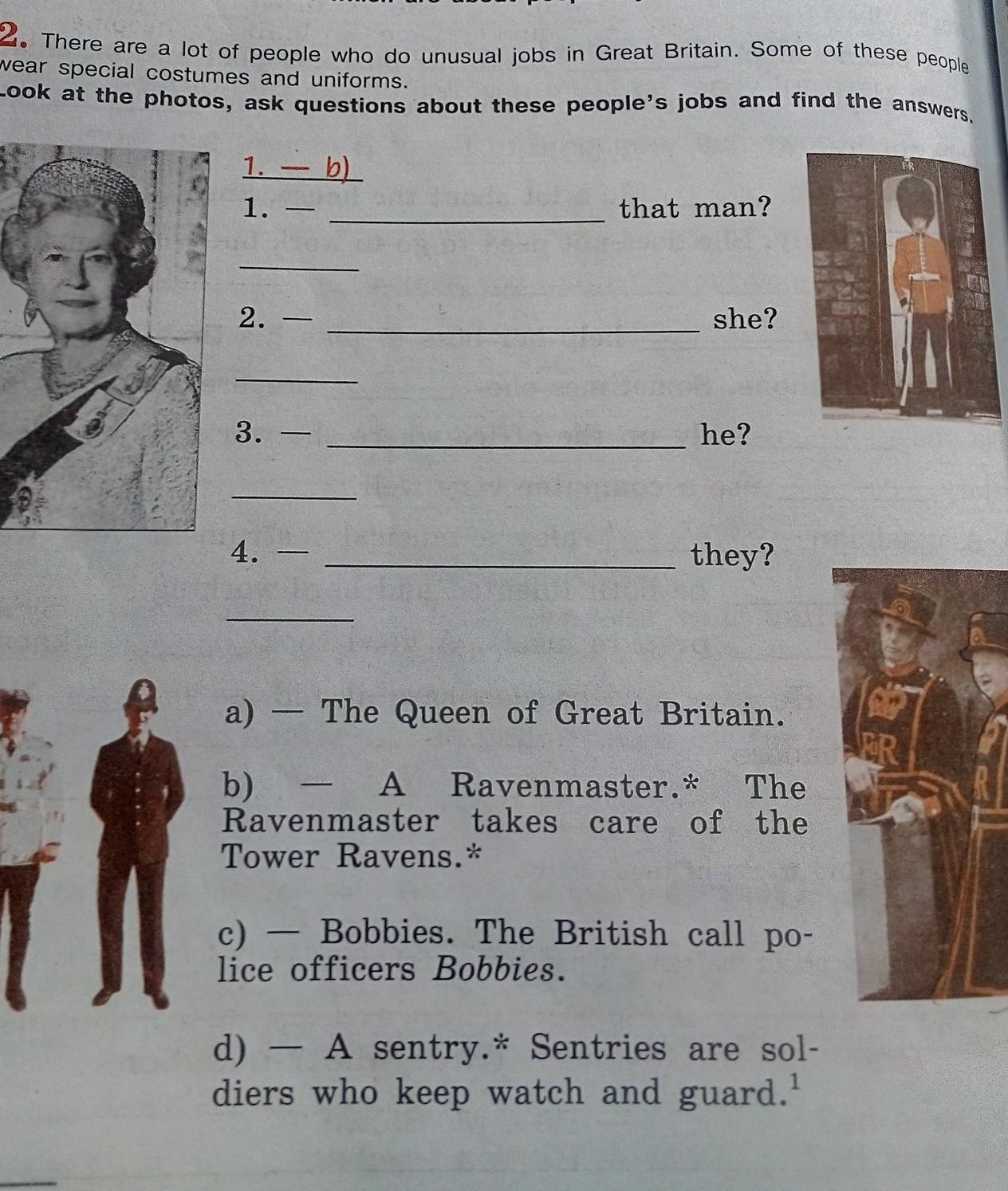 2. Who is she? - a) The Queen of Great Britain.