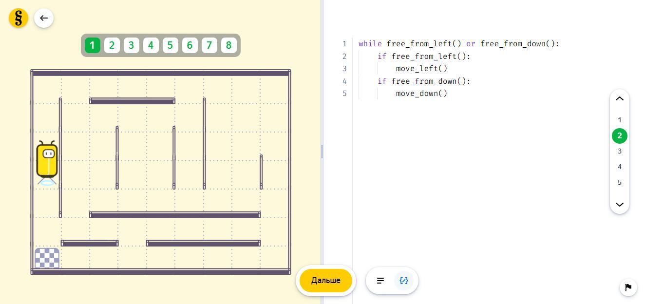 - условные операторы (if free_from_left(), if free_from_down())