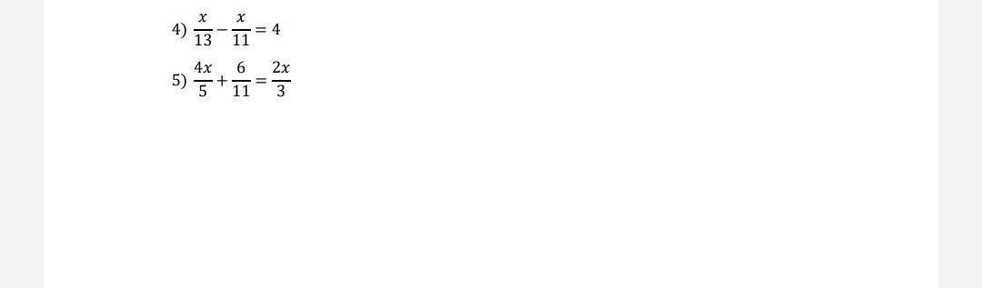 4 )x/13 - x/11 =4 (общий множитель 143,поэтому умножим обе части уравнения на 143) и получаем