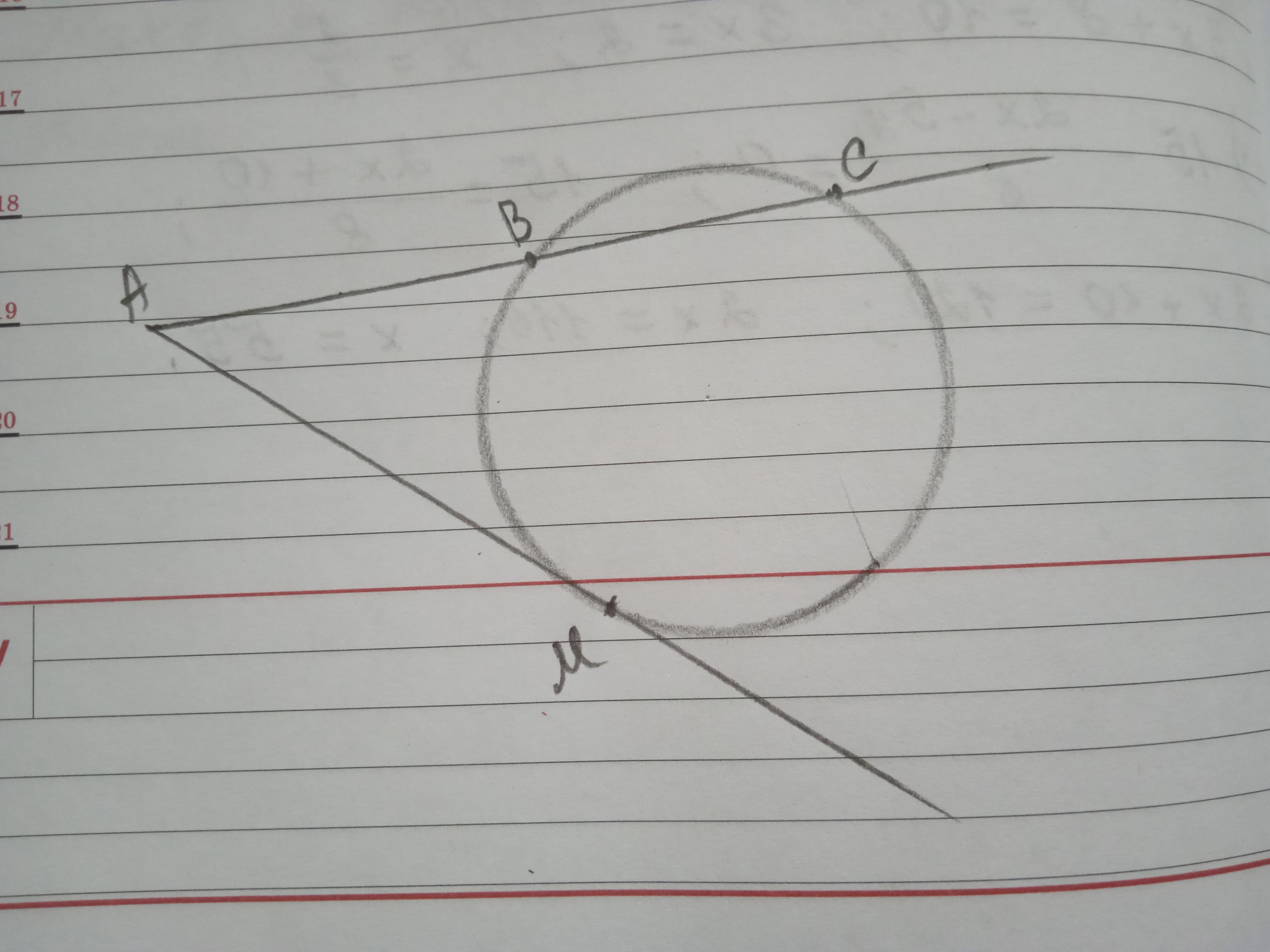 Если из одной точки к окружности проведены секущая и касательная, то произведение всей секущей на ее внешнюю часть равно квадрату отрезка касательной.
