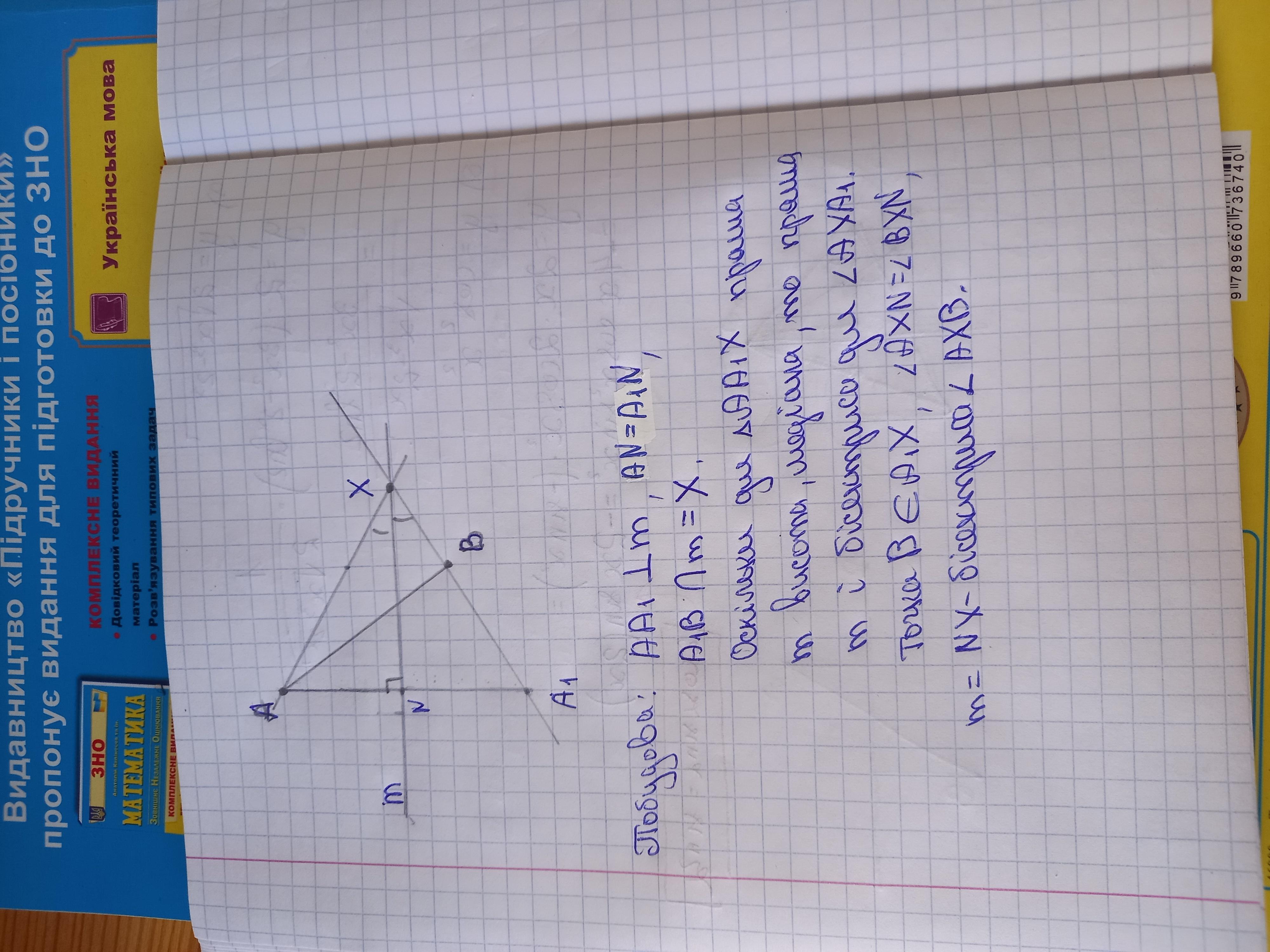 2. Дано пряму m та точки А і В по різні боки від неї. Знайдіть на цій прямій таку точку X, щоб у кута АХВ пряма m була б бісектрисою.