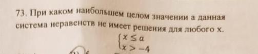 Наибольшее целое, при котором не пересекаются решения неравенств, это -4, каково бы ни было значение х,