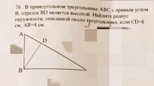 да. там вместо В нужна буква С, АС=8, а радиус в два раза меньше гипотенузы. надеюсь. ход вы поняли.
