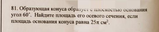 образующая конуса с радиусом, который является проекция образующей на плоскость основания, составляет 60°; это и есть угол наклона образующей к плоскости основания. /это контрольный момент, его обязательно надо обосновывать./