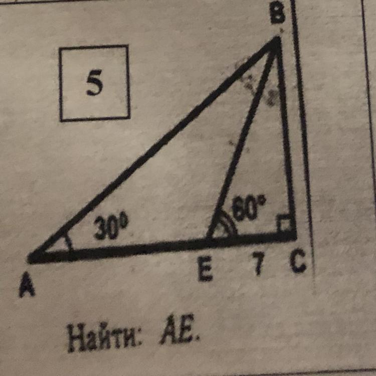 угол АВС = 90° - 30° = 60°, а угол ЕВС = 30°, значит, угол АВЕ = 30° => АЕВ - равнобедренный => АЕ = ЕВ = 14