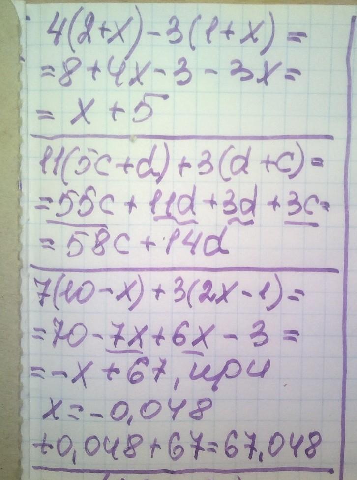 7(10 - x) + 3(2x - 1) при x= -0,048