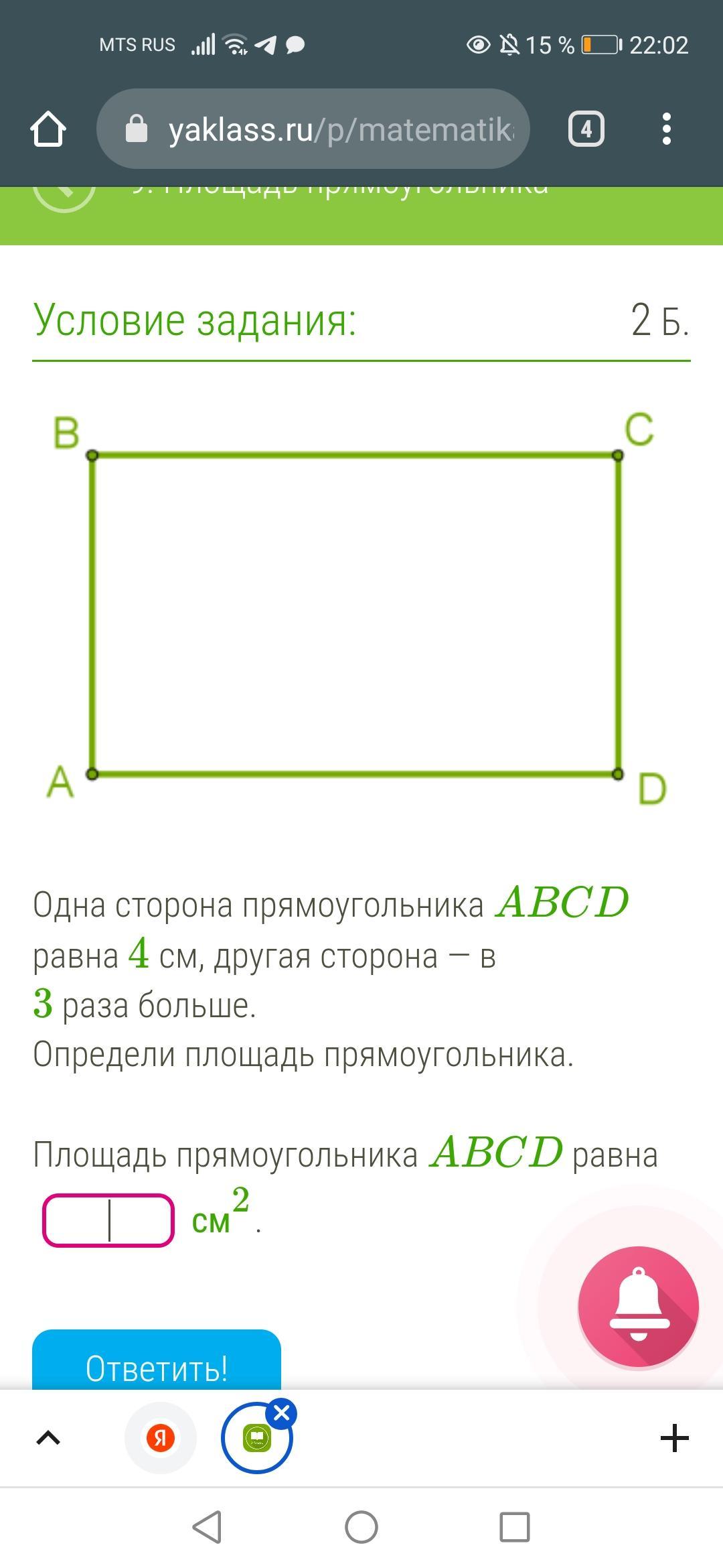 Ответ: Площадь прямоугольника АВСD равна 48см²