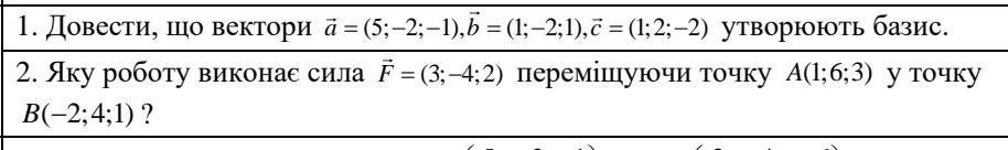 7 – 10балів 1. Довести, що вектори a= − −(5; 2; 1),b= −(1; 2;1),c= (1;2;−2) утворюють базис.