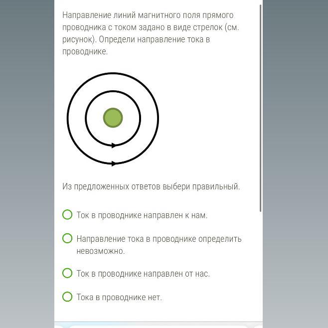 Здравствуй! На рисунке ток течёт к нам, верен первый вариант