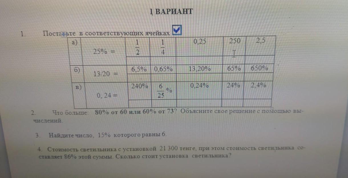 а) 25 % = 1/4; 0,25