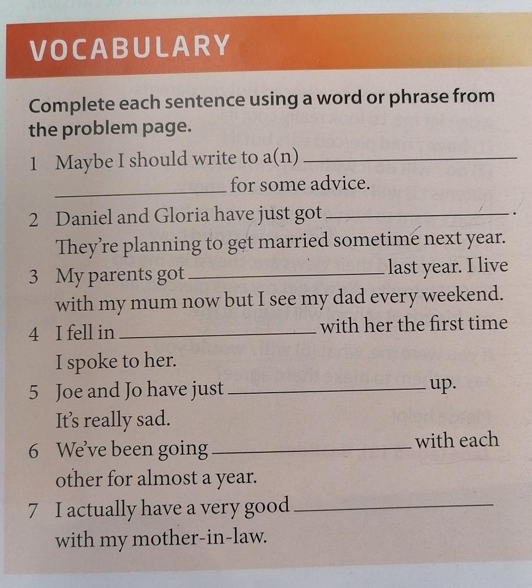 3 My parents got divorced last year. I live with my mum now but I see my dad every weekend.