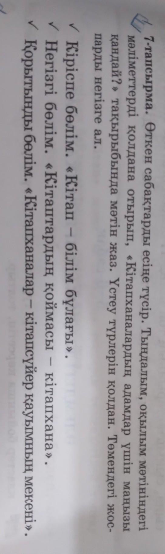 Кітап білім бұлағы. Кітап білімнің қайнар көзі. Онсыз, яғни кітапсыз өмір сүру XXI ғасырда мүмкін емес екендіге мәлім. Кітап қана дәл мәнді білім береді, себебі ол адамды терең ойлауға жетеледі. Әр адам кітаптың беттің ашқан сайын оның әлемінің тылсым табиғаттын, жаңа құндылықтарды үйренеді . "Наданмен дос болғанша, кітаппен дос бол" деп текке айтылмаған. Кімде де болса білімділікке сәл-пәл болсада құштарлығын дамытуға көмектеседі. Кітап оқыған адамның шетте калмасы анық.