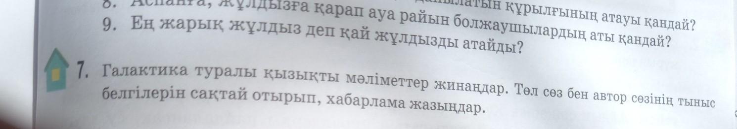 Галактика туралы мәліметтер жинаңдар Төл сөз бен автор сөзінің тыныс белгілерін сақтай отырып хабарлама жазыңдар срочно керек 50балл
