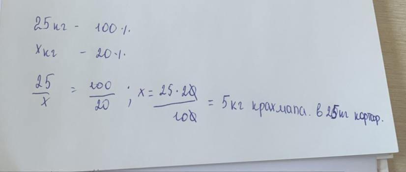 0,2 * 25 = 5 (кг) - крахмала содержится в 25 кг картофеля