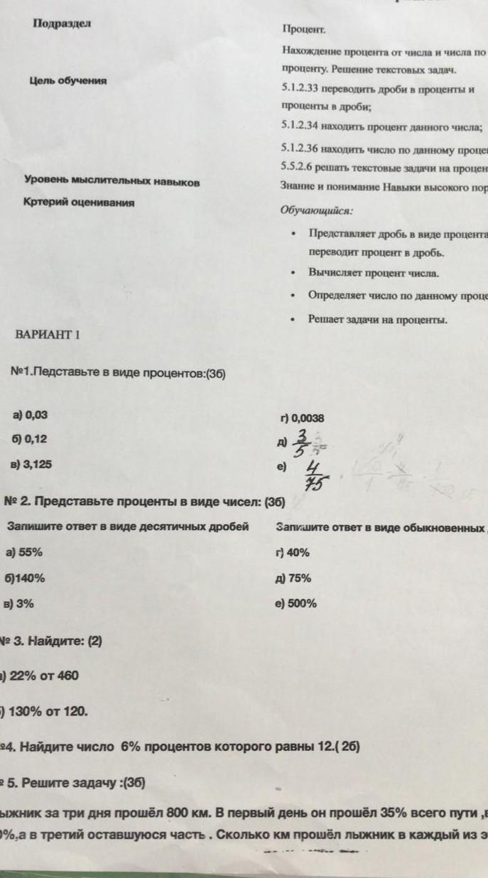 д) 3/5 = 3/5 * 1 00 = 300/5 = 60%