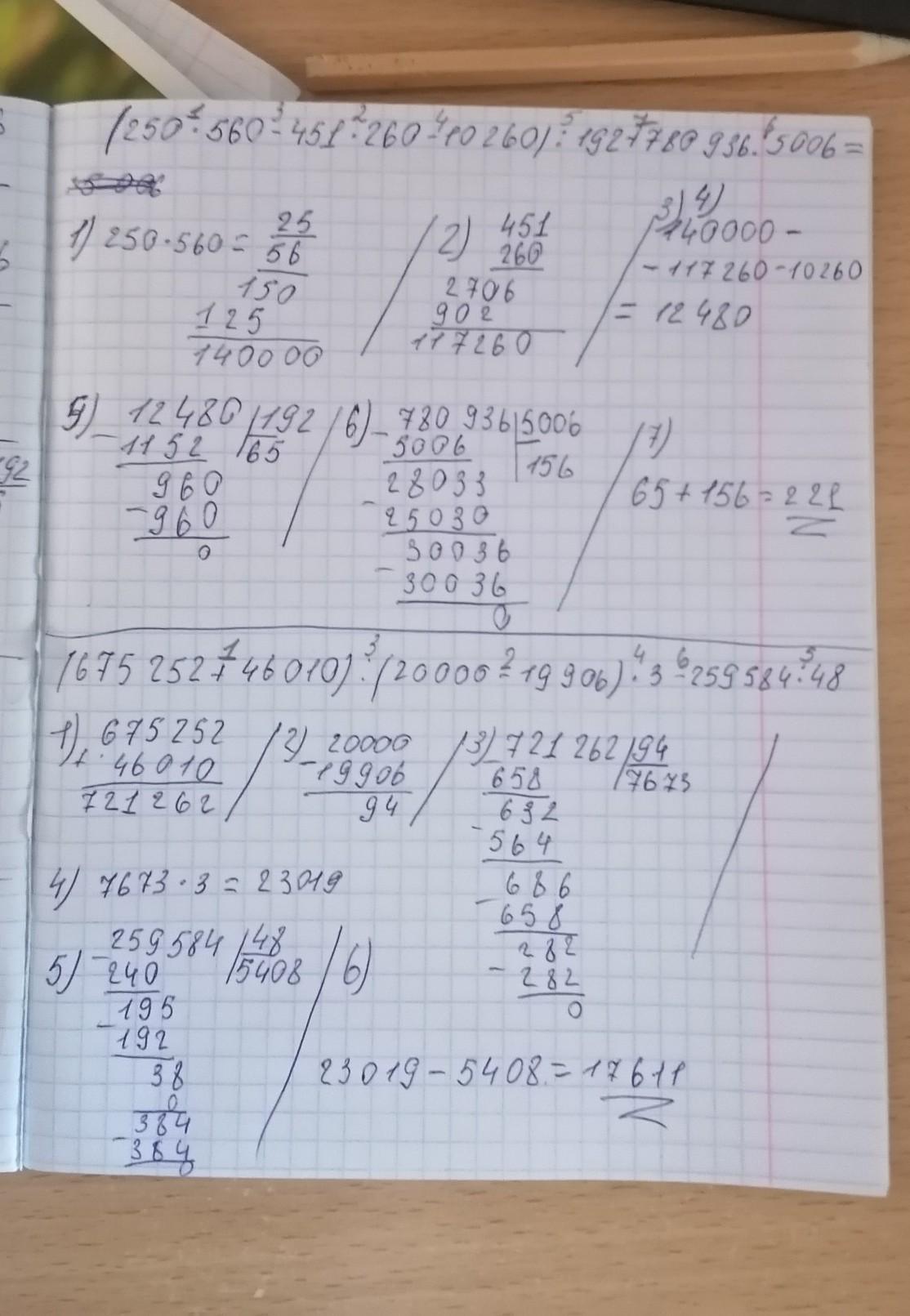 1) (250×560−451×260−10 260)÷192+780 936÷5006=221