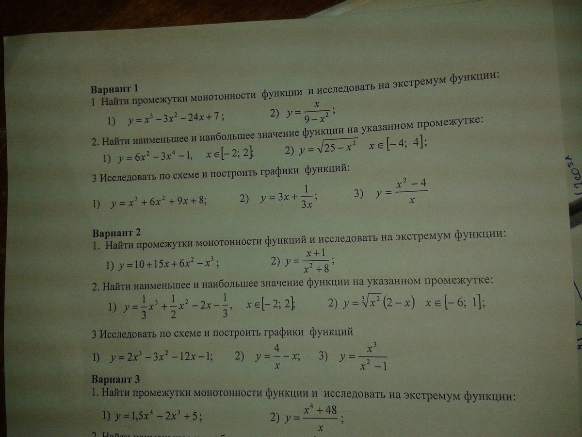 1. 1) y' = 15 + 12x - 3x^2 = 0, 3x^2 - 12 - 15 = 0, D = 324 = 18^2