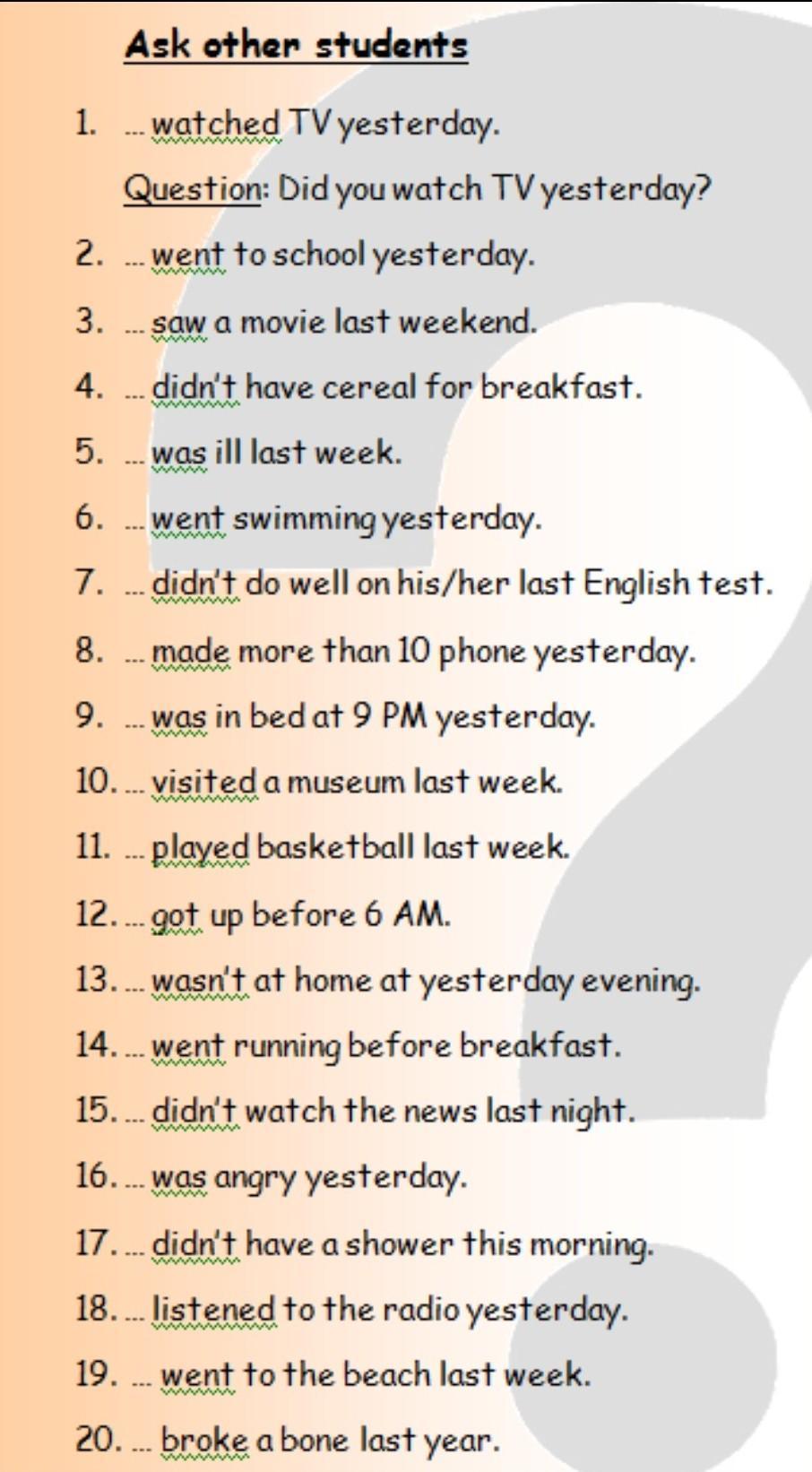составить вопросы по образцу, не забывая, что с глаголом "быть" вспомогательный глагол did не нужен.