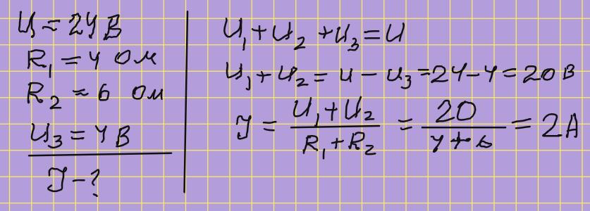 до джерела з напругою 24В. Опір першого 4 Ом, другого-6 Ом, а напруга на кінцях