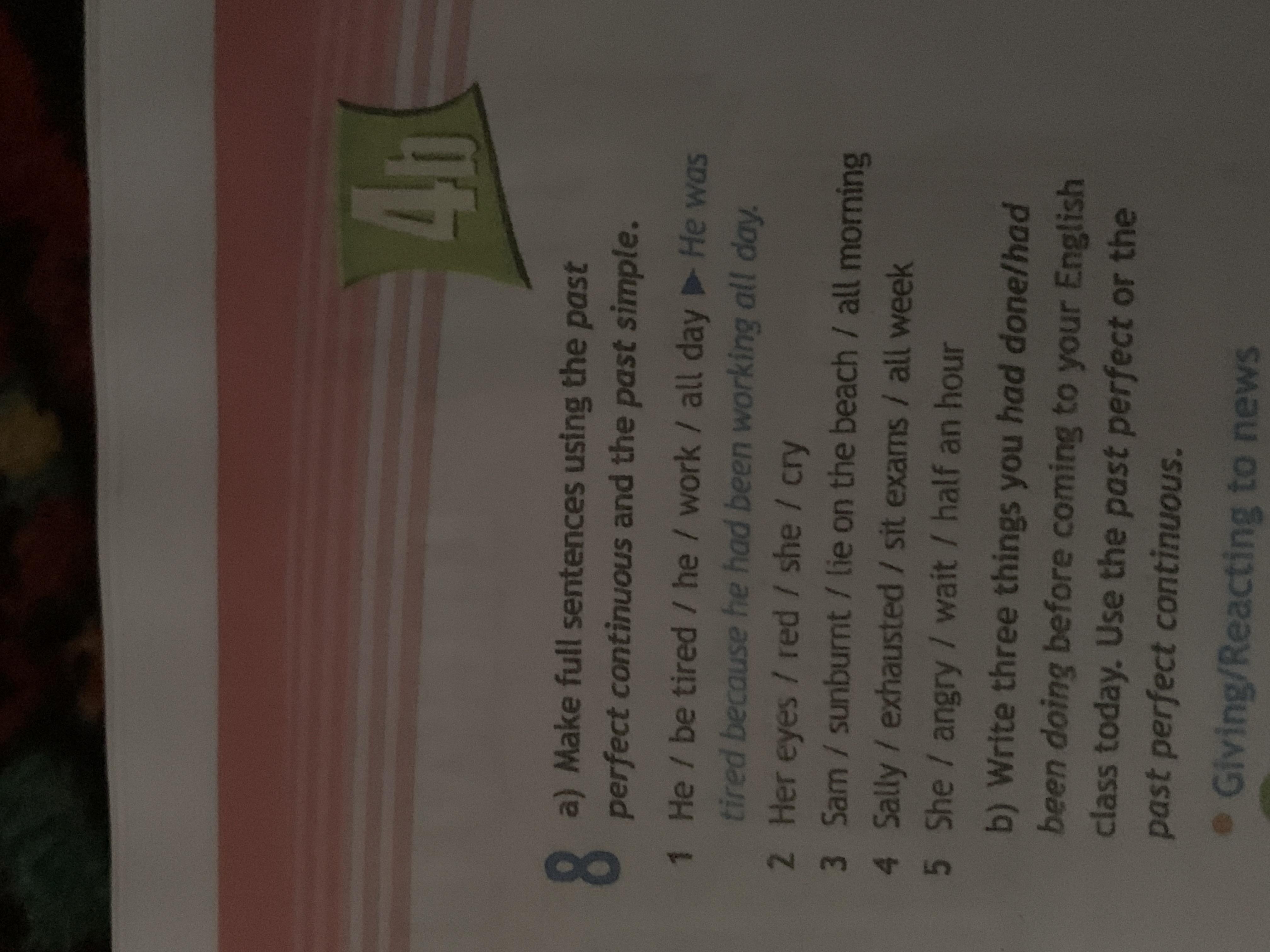 3. Sam sunburnt because he had been lying on the beach all morning.