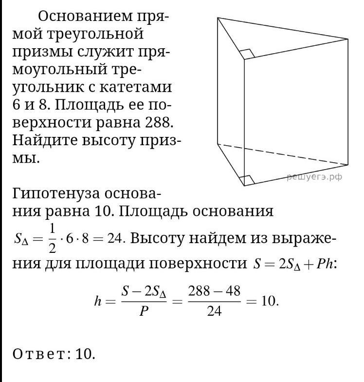 Гипотенуза основания равна: 10