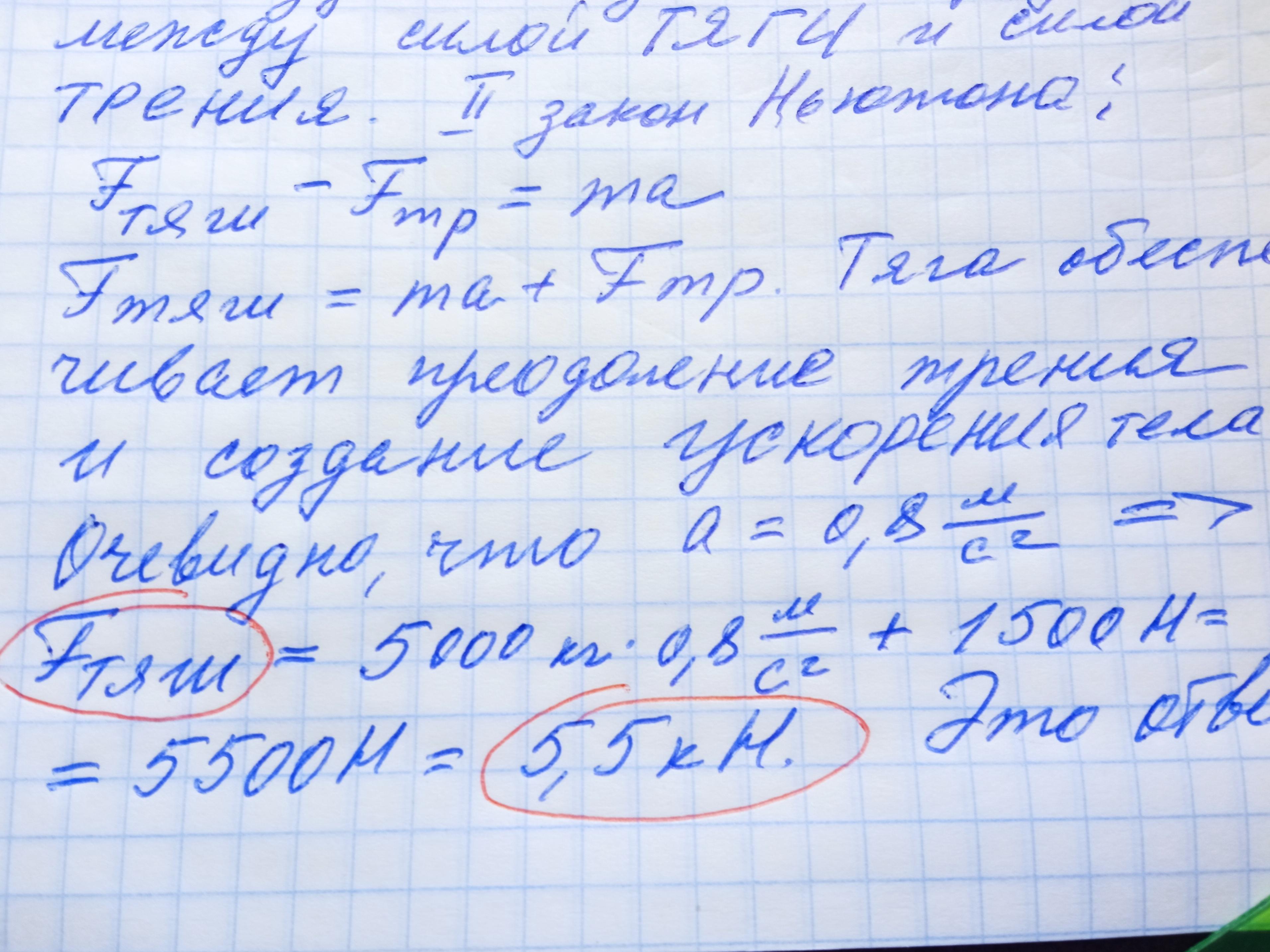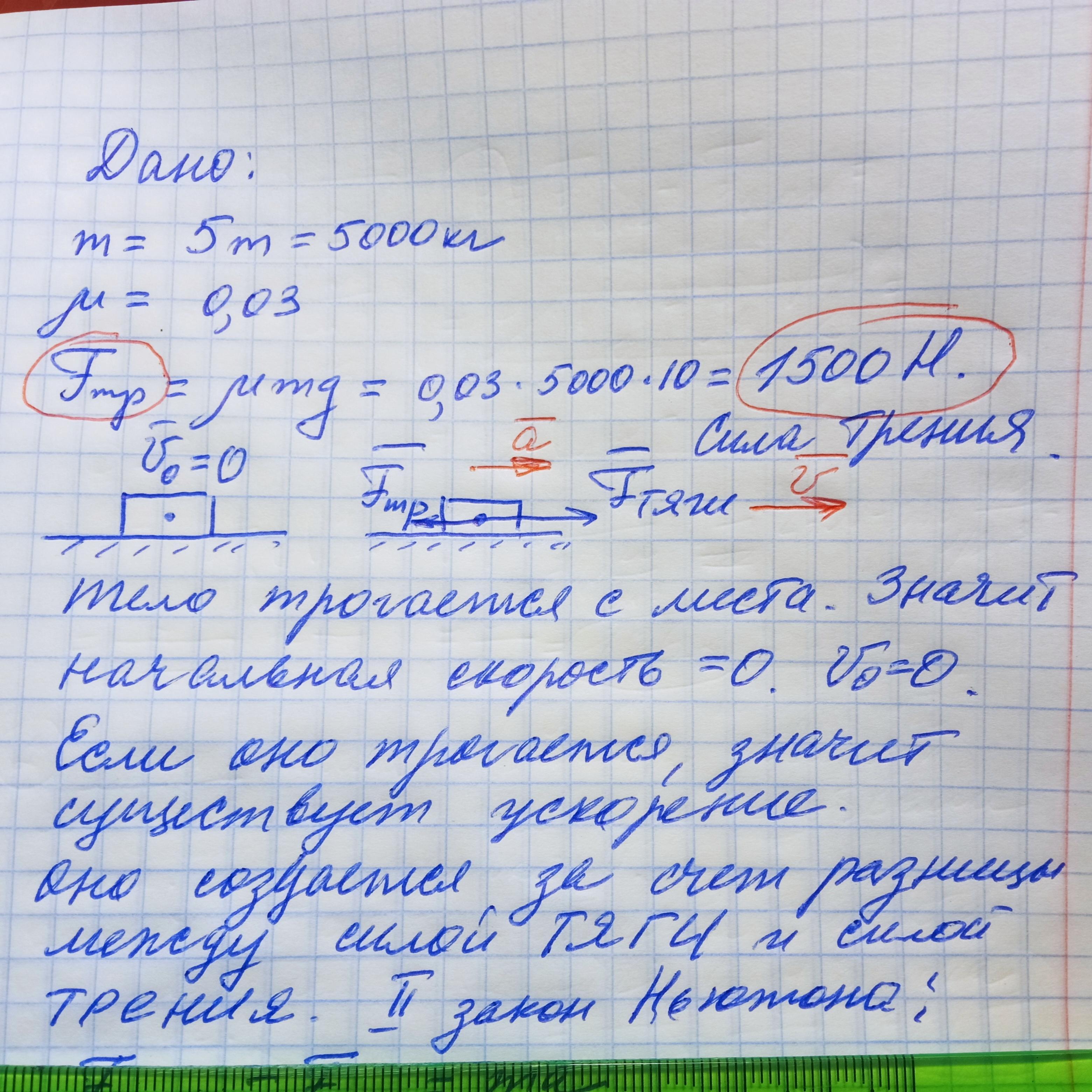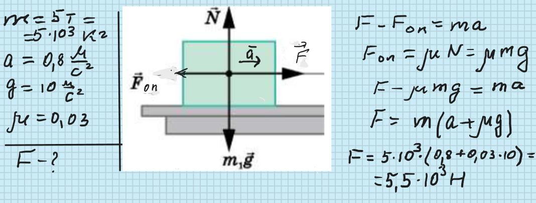 Тело массой 5т движется с места 0.8 м/с найти силу тяги если коэффициент сопротивления движению 0.03. Это переводчик.