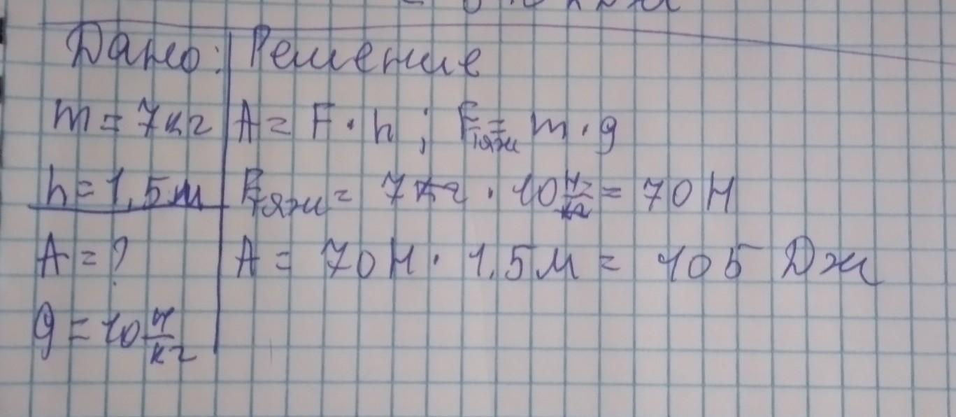 яку роботу треба виконати щоб пакунок з продуктами массою 7 кг підняти на стіл висотою 1.5м