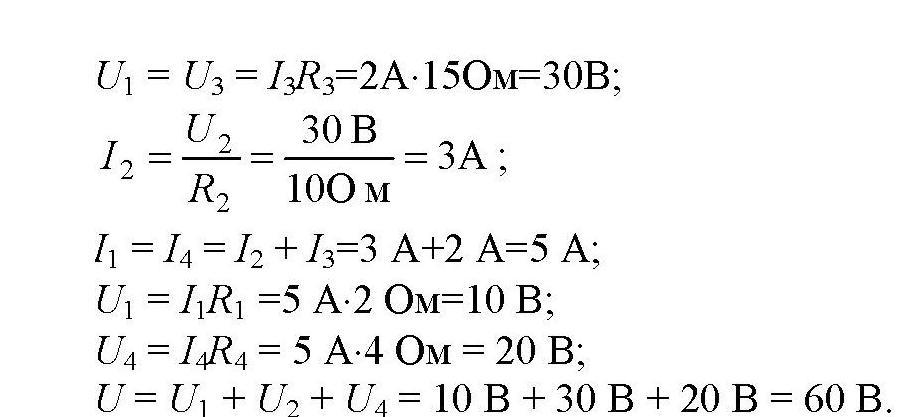 Знайти розподіл струмів і напруг між опорами, якщо амперметр показує 2 А, R1 = 20 Ом, R2 = 10 Ом, R3 = 15 Ом, R4 = 4 Ом Хелп срочно