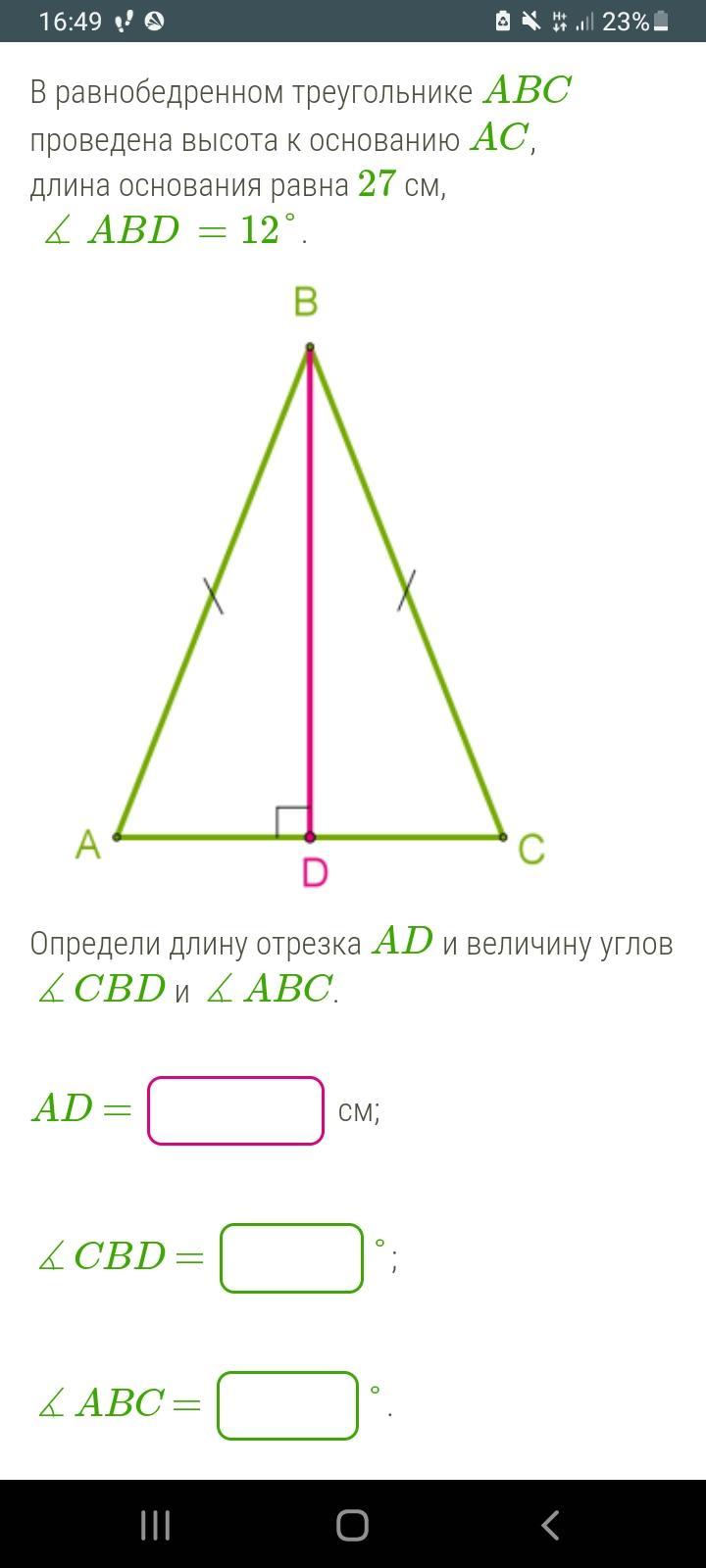 В равнобедренном треугольнике высота, проведённая к основанию, является также медианой и биссектрисой ⇒