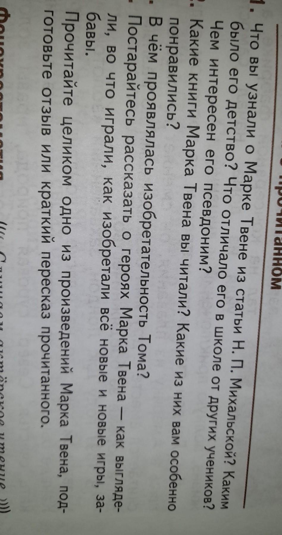 2) Я прочитала книгу "Приключения Тома Сойера" Марка Твена. Мне очень понравилась эта книга, потому что там рассказывается о жизни детей, то понимаешь, что с тобой приключались похожие истории.