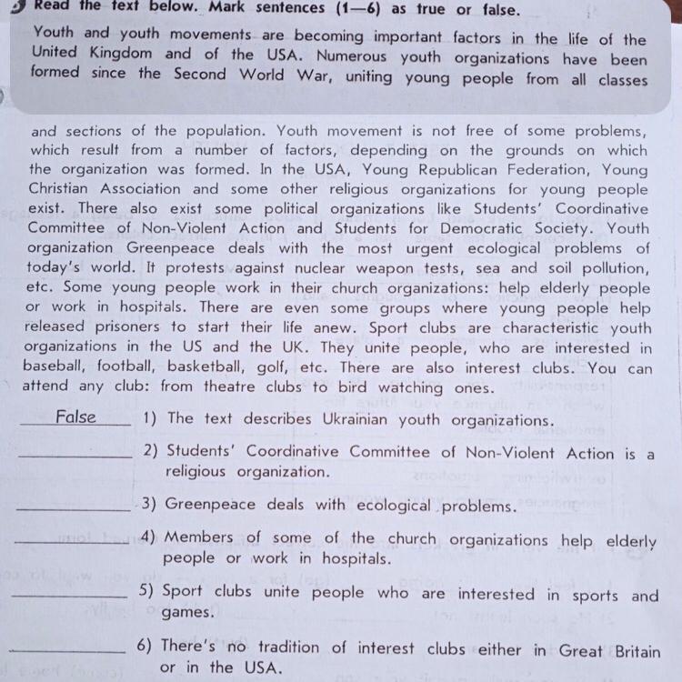 5) Sport clubs unite people who are interested in sports and games. — True.