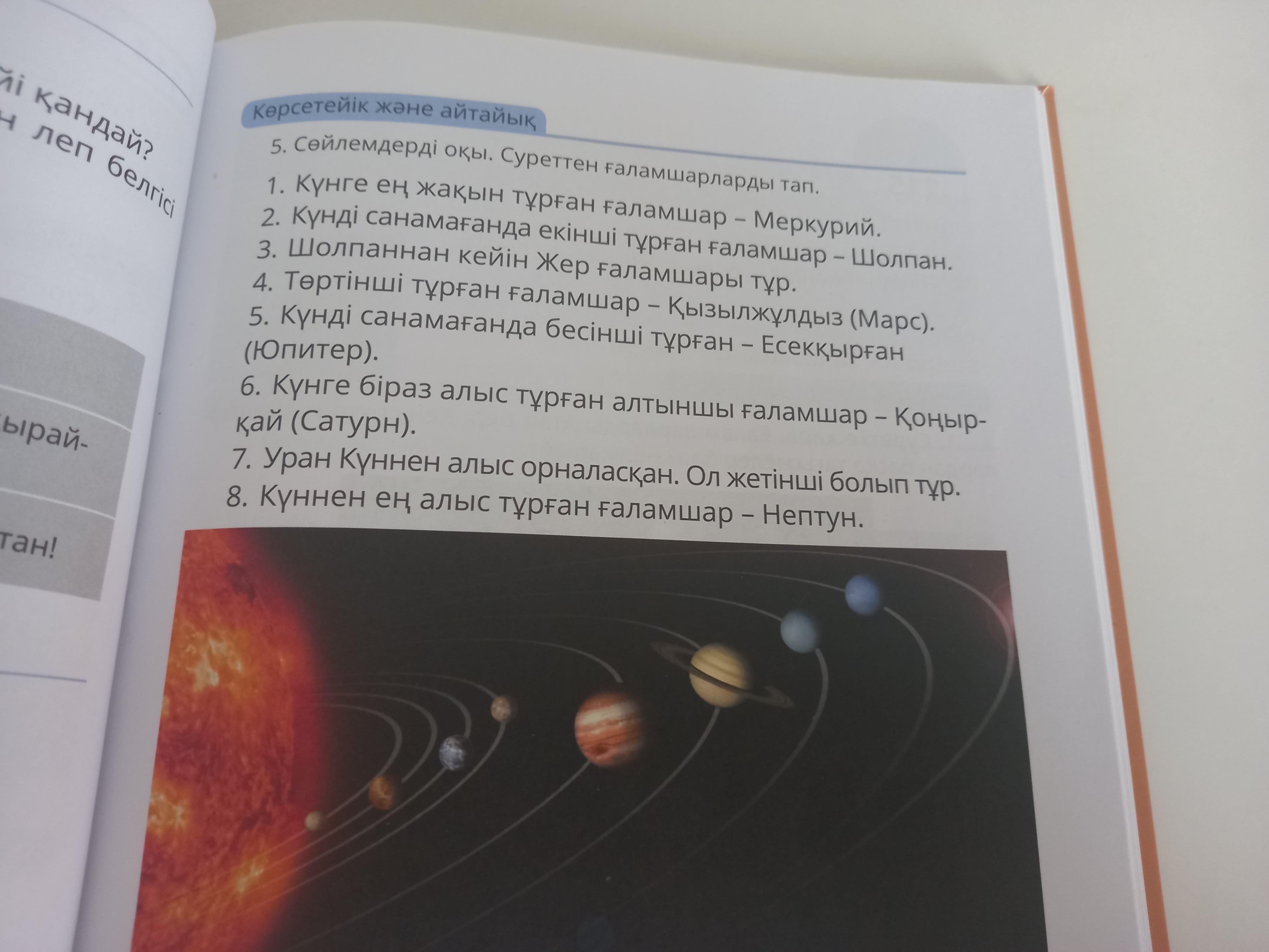 санап табасынго мысалы куннін касында турған ол Меркурий ал ен сонгы көк ол Нептун
