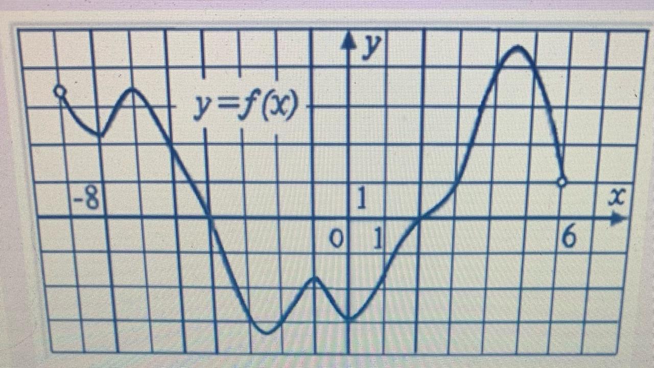 На рисунке изображен график функции y= f(x), определенной на интервале (-8; 6). Определите количество целых точек, в которых производная функции положительна.