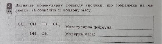 Визначте молекулярну формулу сполуки що зображена на малюнку, та обчисліть її молярну масу.