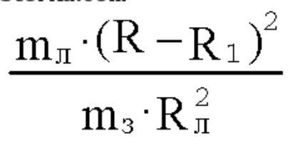 m місяця (R - R1)^2/ m землі * R2л = 7 * 10^22 кг * (384 * 10^6 м - 1730 км)^2 / 6 * 10^24 kg * (1730 км)^2 = 570 разів