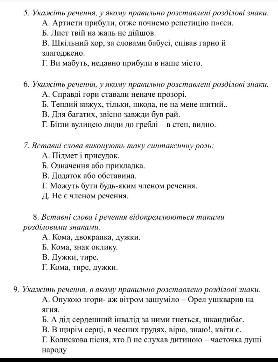5. В; 6. Б; 7. Д; 8. Г; 9. Г.