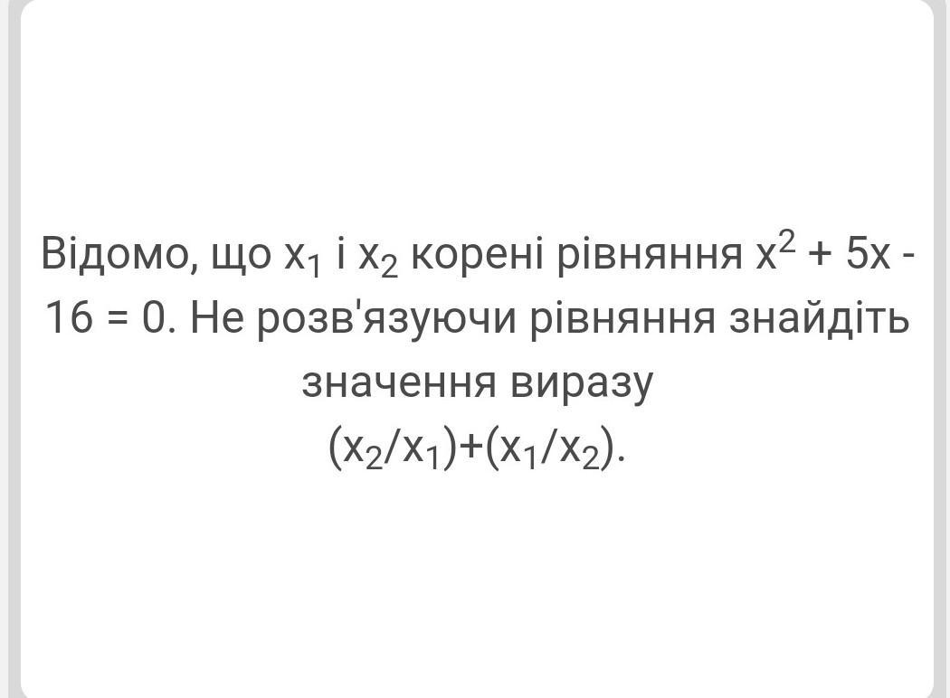 \displaystyle\bf\\x^{2} +5x-16=0\\\\Teorema \ Vieta:\\\\x_{1}+x_{2}  =-5\\\\x_{1} \cdot x_{2} =-16\\\\\\\frac{x_{2} }{x_{1} } +\frac{x_{1} }{x_{2} } =\frac{x_{1} ^{2} +x_{2} x^{2} }{x_{1} \cdot x_{2} } =\frac{(x_{1} +x_{2} )^{2}-2x_{1} x_{2}  }{x_{1}\cdot x _{2} } =\frac{(-5)^{2} -2\cdot(-16)}{-16} =\\\\\\=\frac{25+32}{-16} =-\frac{57}{16} =-3,5625