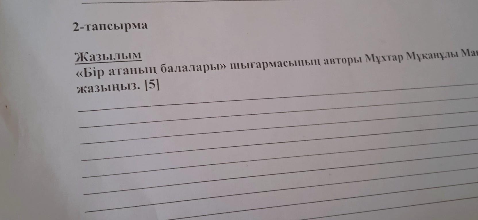3. Мәтінде кездесетін сын есімдерді теріп жазыңыз. 121 2-тапсырма Жазылым «Бір атаның балалары» шығармасының авторы Мұхтар Мұқанұлы Мағауинге хат жазыңыз. [5] 2022/4/18 17:06