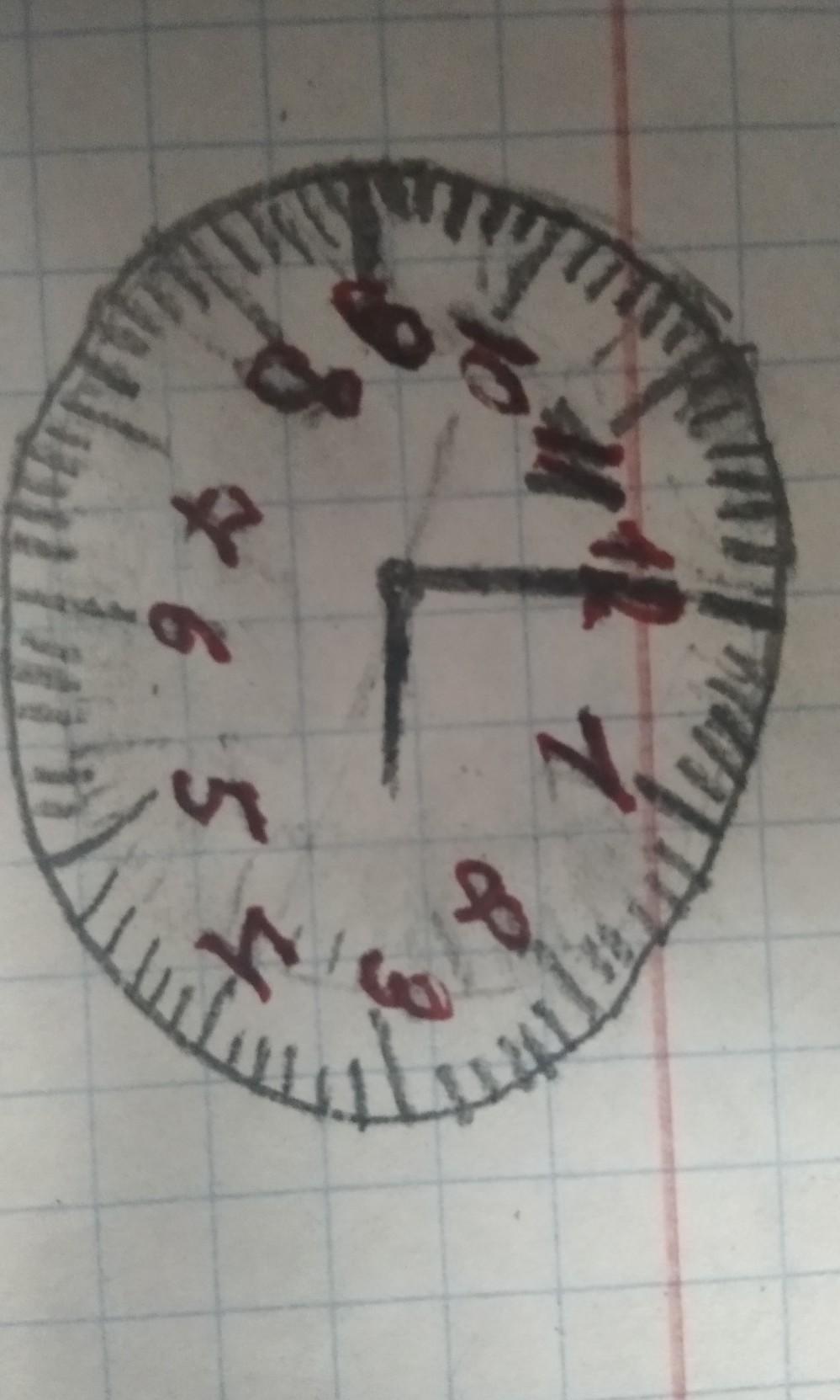 Постройте и измерьте угол, образованный стрелками часов, которые показывают: 1) 4ч; 2) 10 ч; 3) 7 ч; 4) 7ч 15 мин; 5) 2ч 30 мин; 6) 1 ч 45 мин.