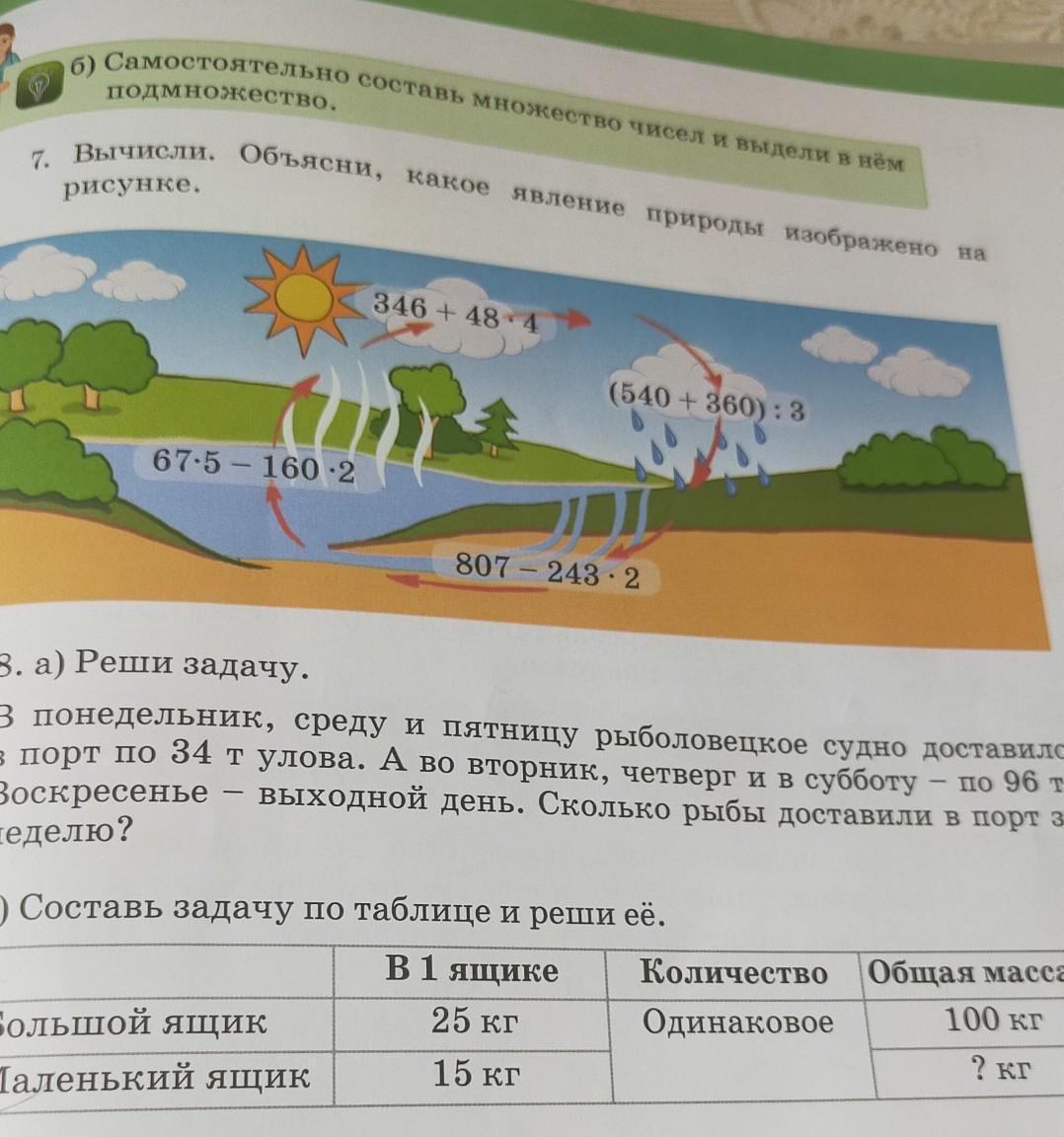 Составь задачу по таблице и реши её. В 1 ящике Количество 25 кг Одинаковое Большой ящик 15 кг Маленький ящик Общая масса 100 кг ? кг