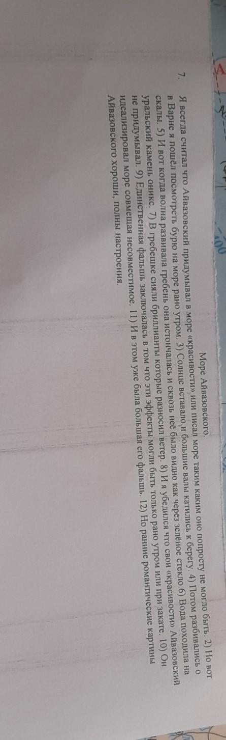 Я всегда считал, что Айвазовский придумывал в море «красивости» или писал море таким, каким оно попросту не могло быть. (СПП) Но вот в Варне я пошел посмотреть бурю на море рано утром. (простое) Солнце вставало и большие валы катались к берегу.(ССП) Потом разбивались о уральский камень оникс.(простое, нет союзов) В гребешке сияли бриллианты, которые разносил ветер. (СПП) И я убедился, что свои «красивости» Айвазовский не придумывал.(простое) Единственная фальшь заключалась в том, что эти эффекты могли быть только рано утром или при закате. (спп) Он идеализировал море, совмещая несовместимое.(простое) И в этом уже была большая его фальшь. (простое) Но ранние романтические картины Айвазовского хороши, полны настроения.(простое)