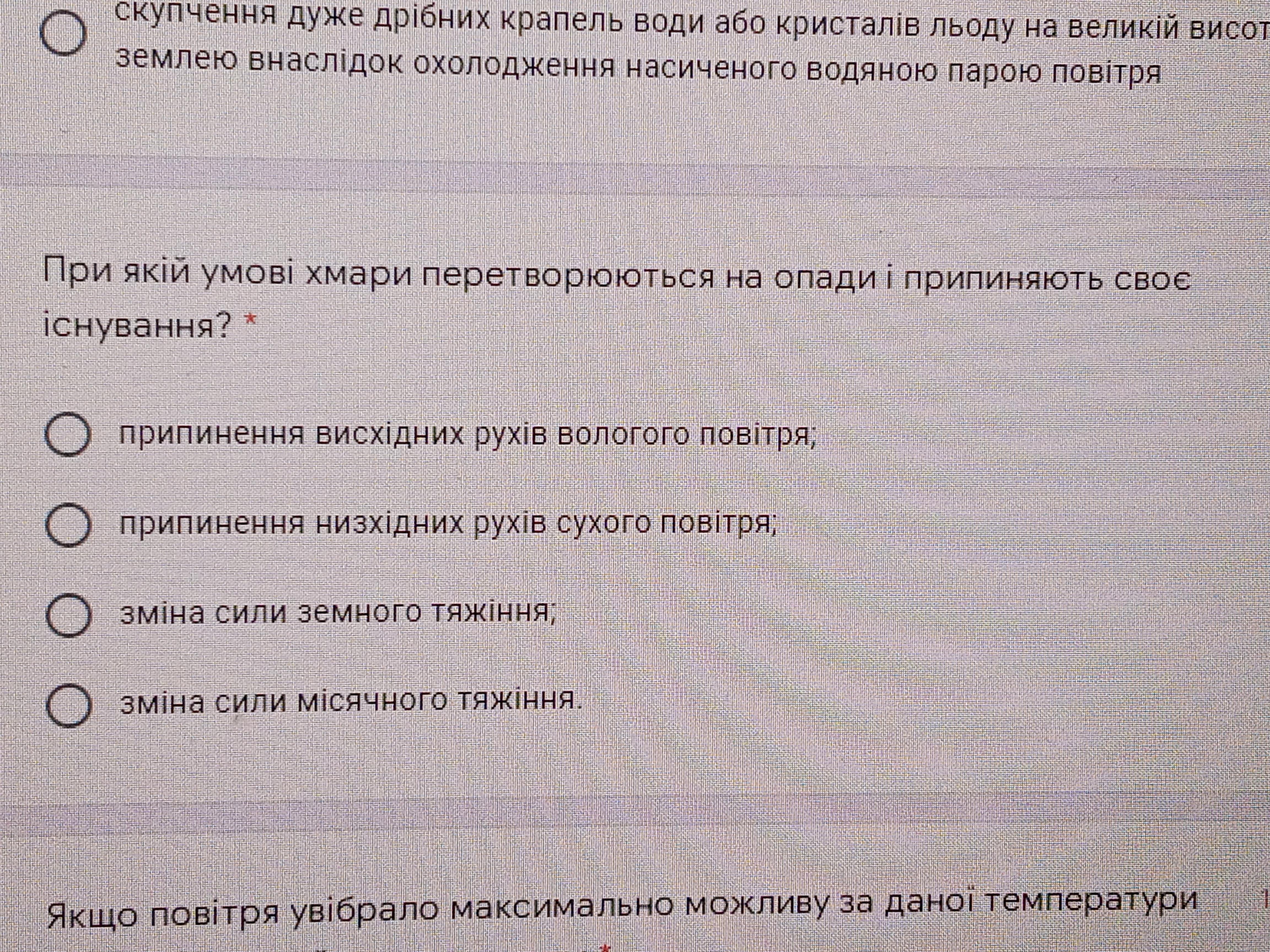 Відповідь:Припинення висхідних рухів вологого повітряснення: