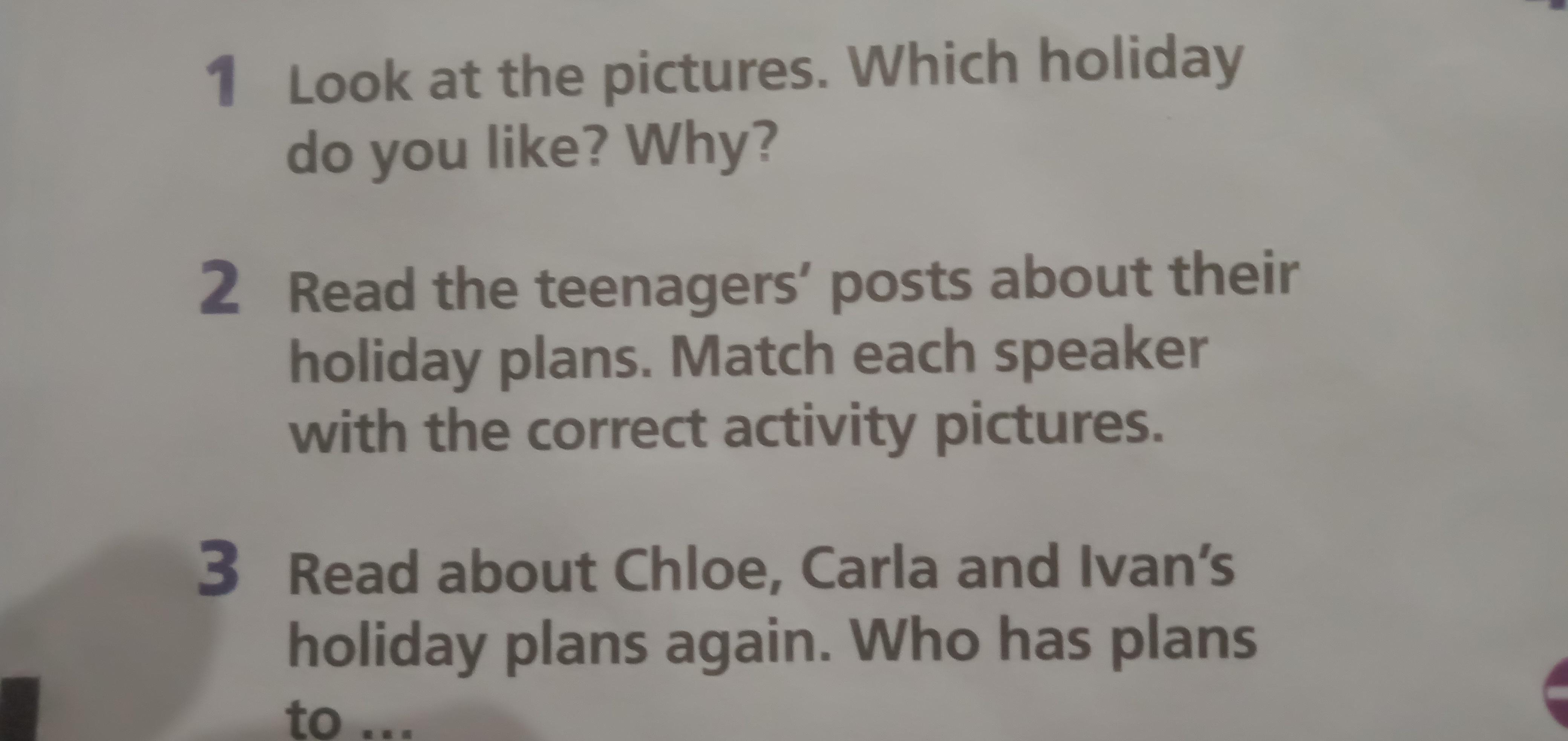3.Прочитай о планах на каникулы Члои, Карлы, и Ивана, опять.