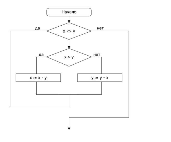 Определи значение целочисленной переменной x после выполнения фрагмента алгоритма, изображённого на рисунке, при x = 24, y = 120.