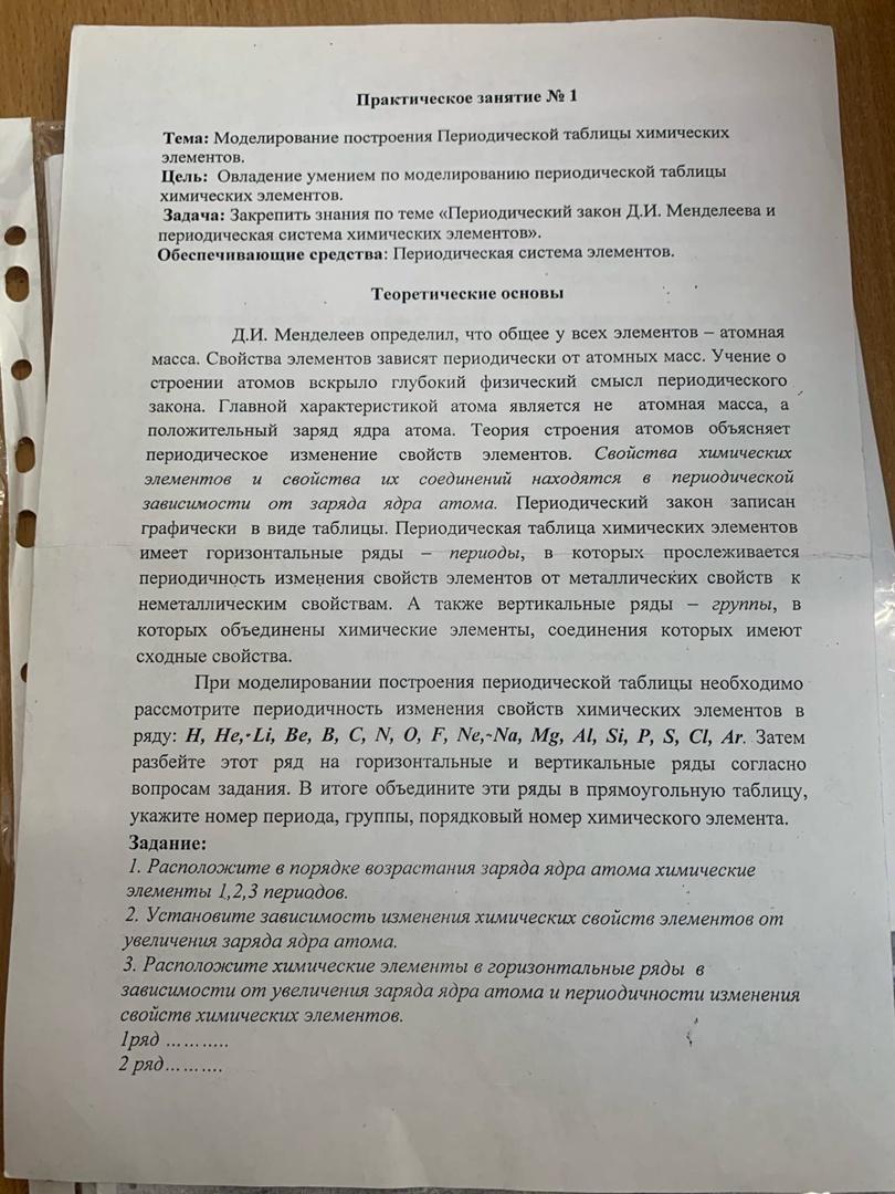 Тема: Моделирования построения Периодической таблицы химических элементов