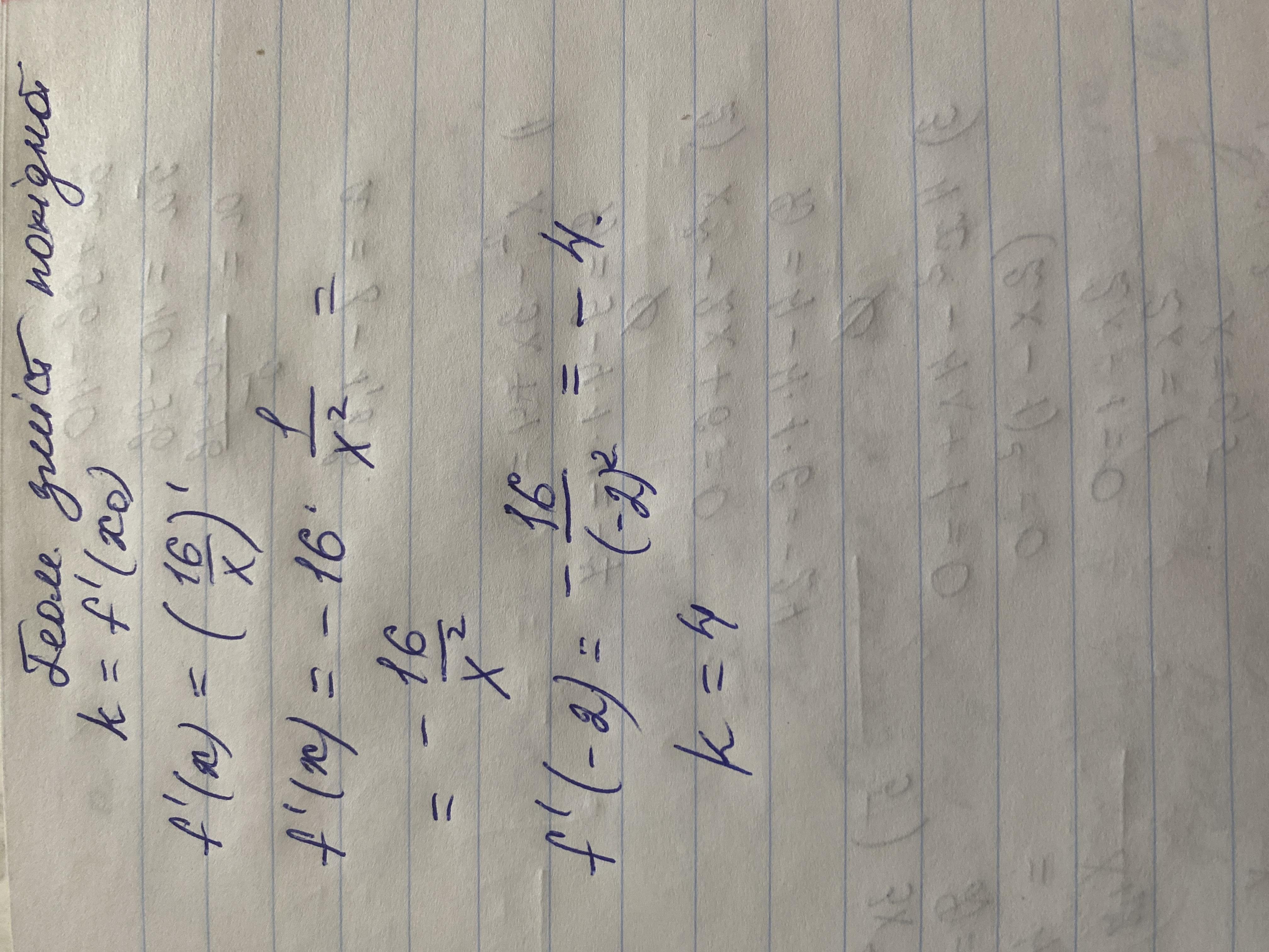 Чому дорівнює кутовий коефіцієнт дотичної до графіка функції у=16/х у точці з абсцисою х = -2. *