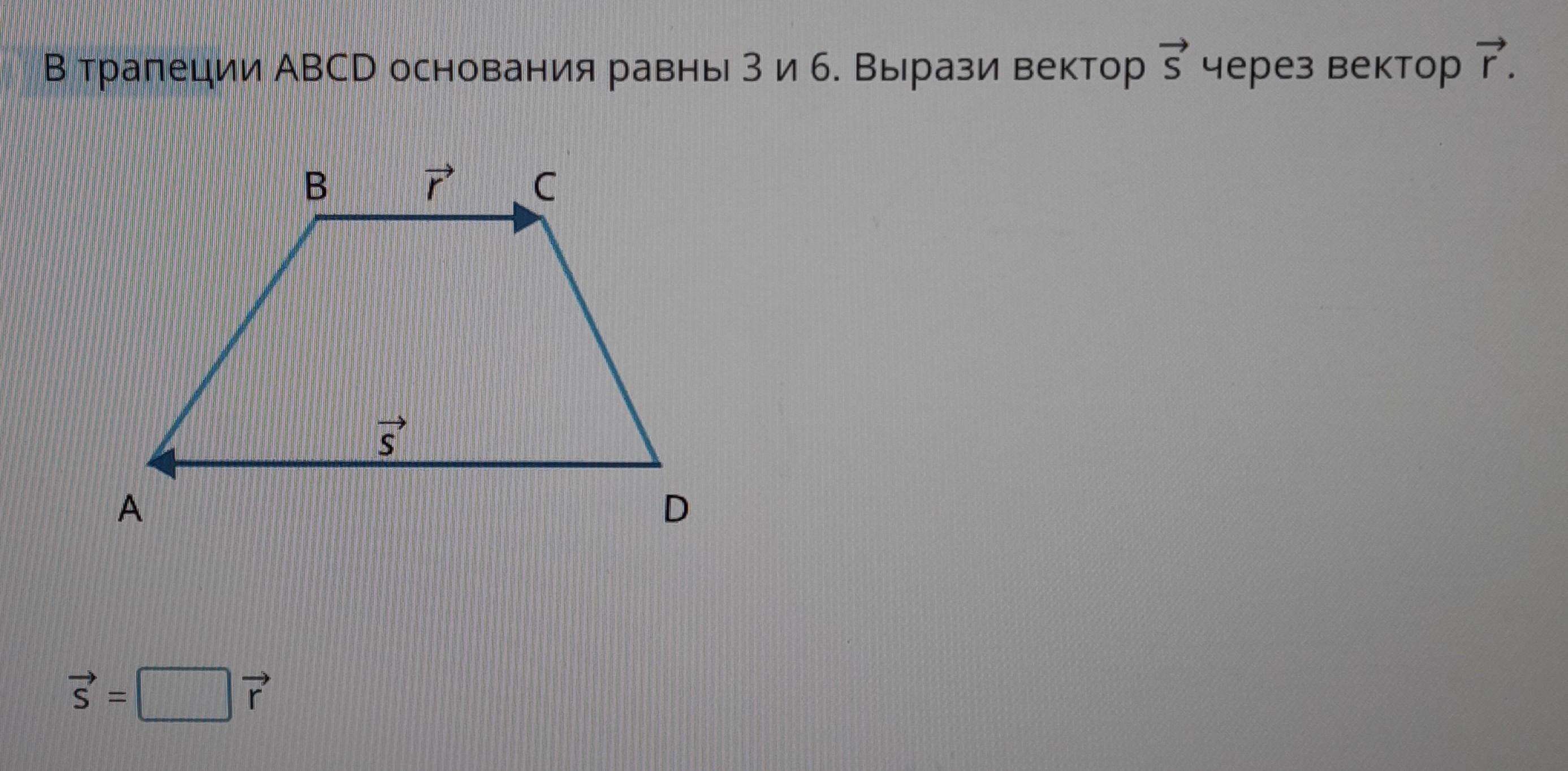 В трапеции абцд основания равны 3 и 6. вырази вектор с через вектор р.